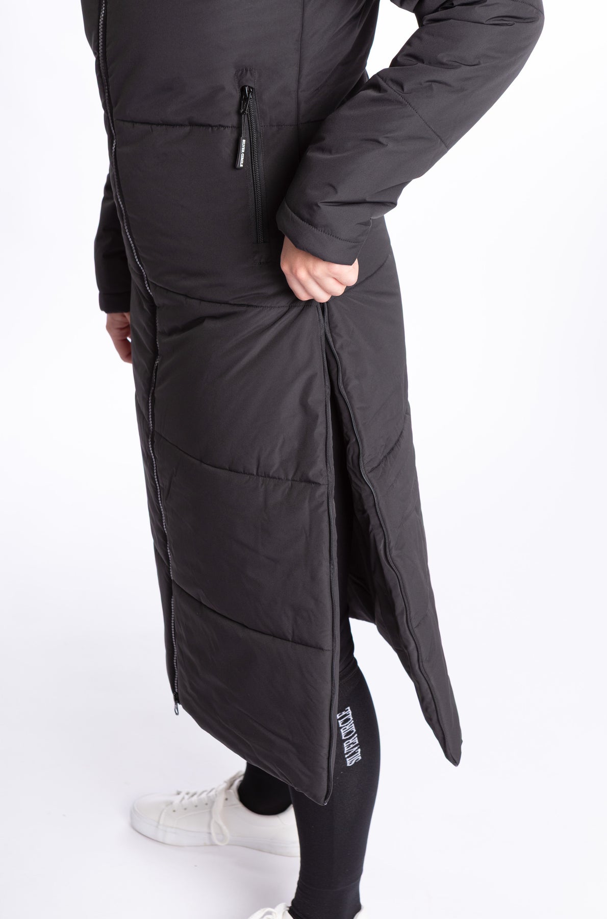 • 2 lange seitliche Reißverschlüsse zum Reiten